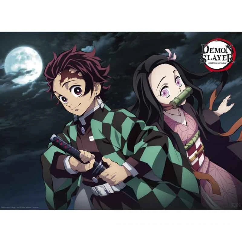 Demon slayer (Kimetsu no Yaiba) Poster Tanjiro et Nezuko. Poster sous licence officielle taille: 52 cm x 38 cm avec une magnifique illustration de Tanjiro et Nezuko.