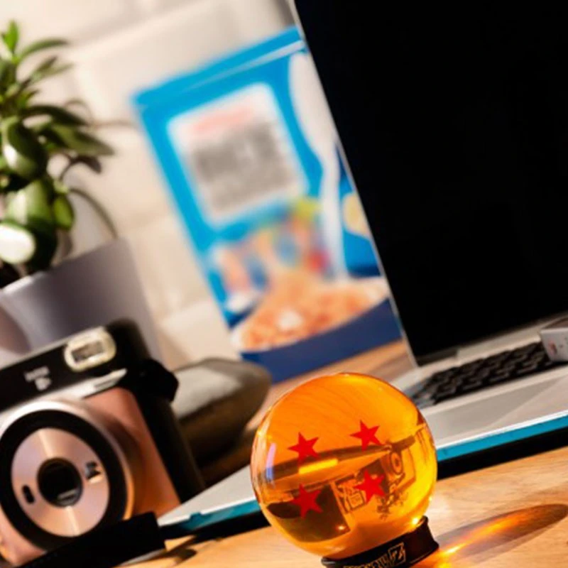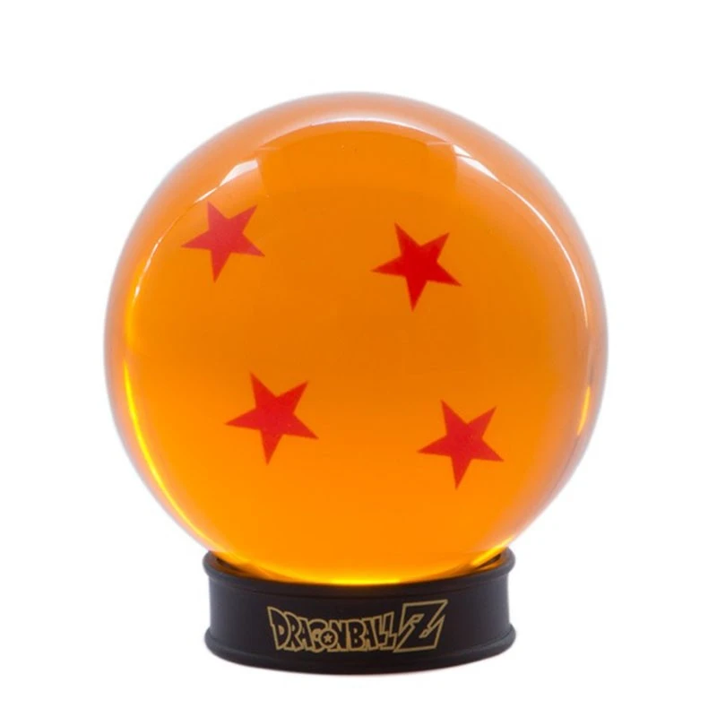 Dragon Ball Boule de cristal 4 étoiles. Réplique officielle de la boule de cristal 4 étoiles de DBZ en PVC et Acrylique , taille : 75 mm + socle, le must pour les fans du manga.