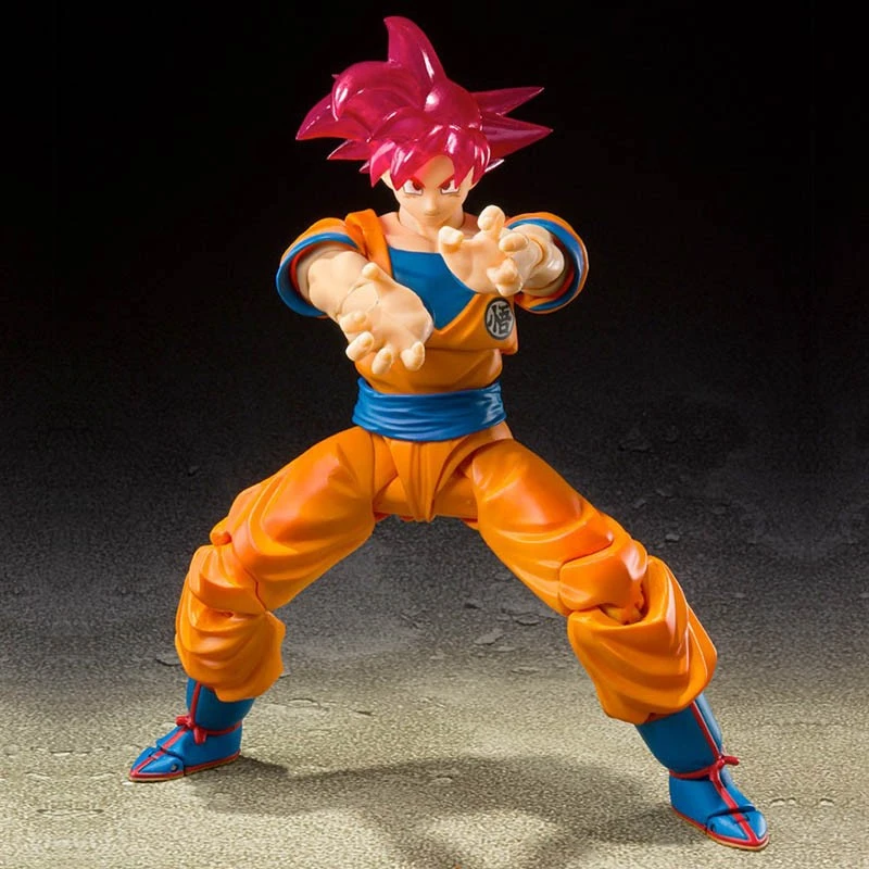Dragon Ball Z Figurine Son Goku Super Saiyan God dans la collection S.H Figuarts Event Exclusive Color Edition par Bandai Tamashii. Figurine articulée en pvc avec accessoires, taille : 14 cm de Goku dans une version collector Event Exclusive Color.