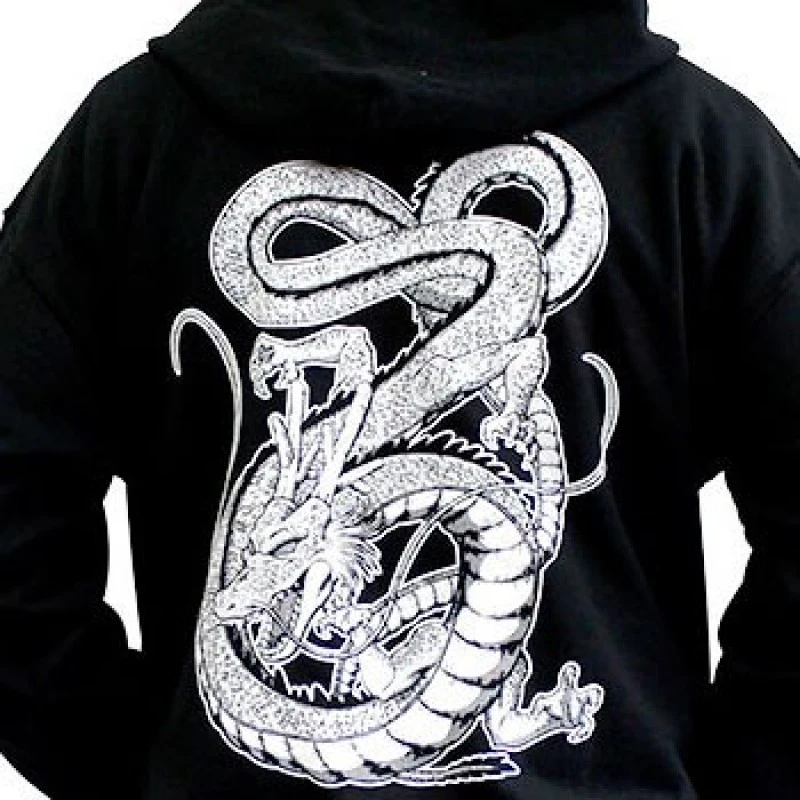 Veste Dragon Ball – « DBZ/ Shenron ». Arborez l’imposant dragon légendaire, Shenron, dans votre dos avec cette superbe veste Dragon Ball Z. Cette veste Dragon Ball de Shenron possède une capuche ainsi que deux poches kangourou. Avec cette veste DBZ, réalisez les plus fous de vos voeux !!!!