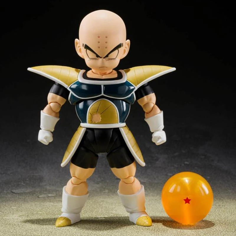 Dragon Ball Z Figurine Battle clothes version dans la gamme S.H Figuarts du fabricant Bandai Tamashii. Figurine DBZ articulée de Krillin dans une armure Saiyan lors du chapitre Nameck.