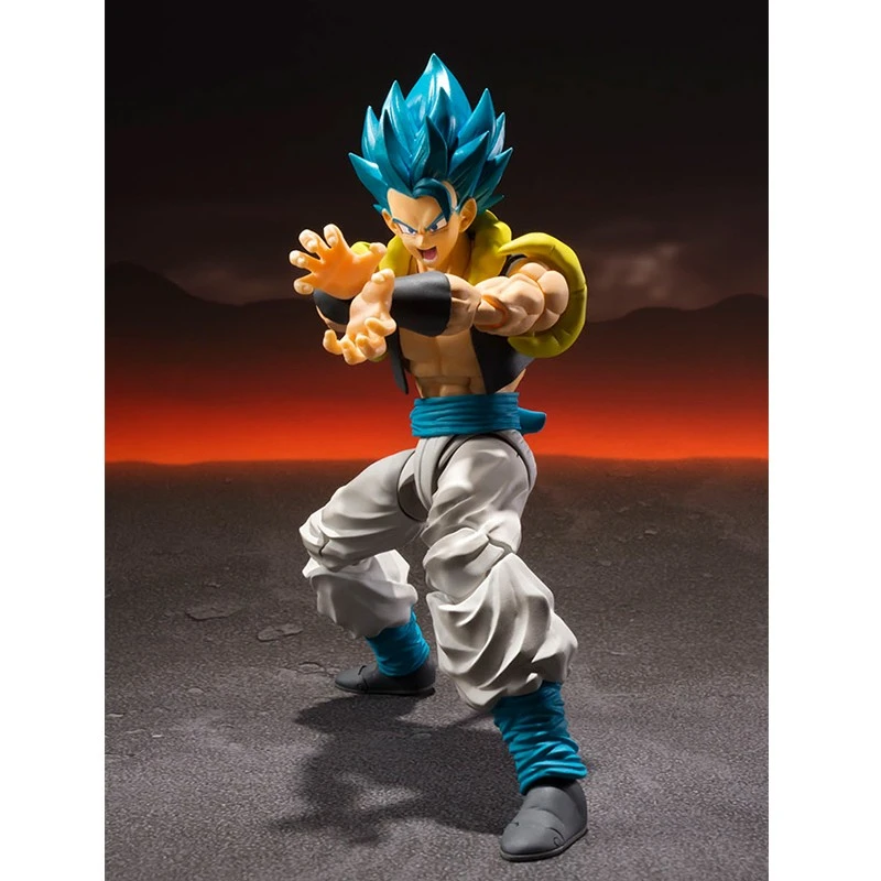 Figurine Gogeta Super Saiyan Blue dans la gamme S.H Figuarts par Bandai Tamashii. Figurine articulée avec divers accessoires tiré du film Dragon Ball Super Broly the Movie.