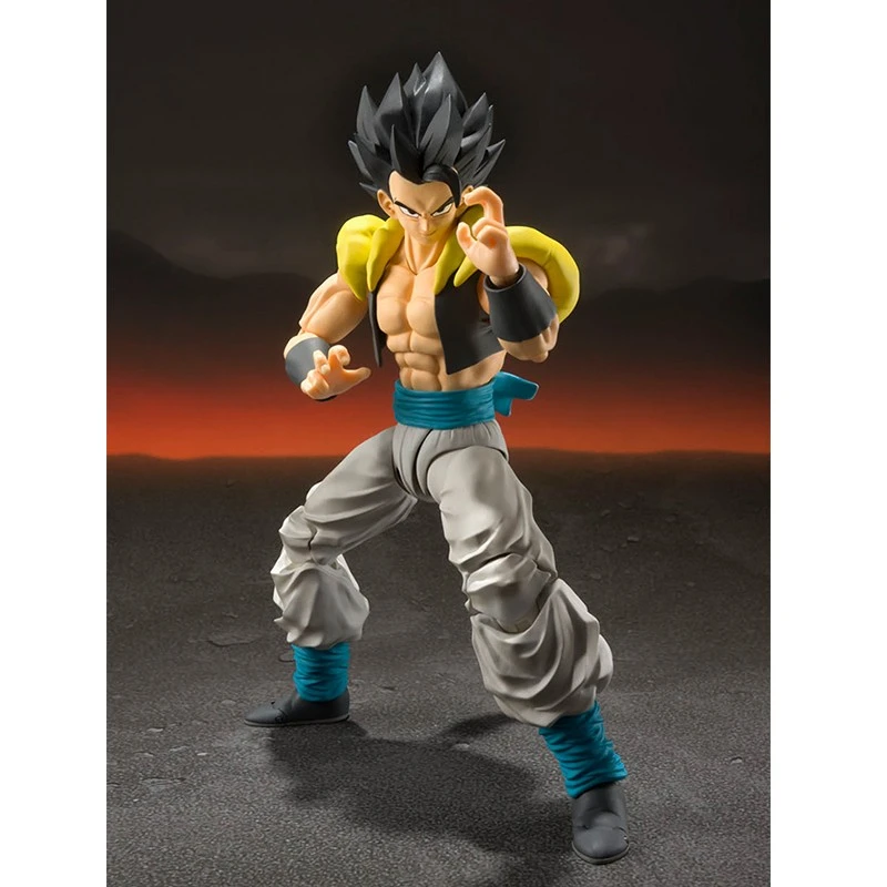 Gogeta mais en version Super Saiyan GOD !. Le set comprend 3 paires de mains interchangeables ainsi que 3 visages dont la version cheveux noirs. Elle sera parfaite pour la mettre en action face à la S.H.Figuarts de Broly Full Power (vendue séparément)