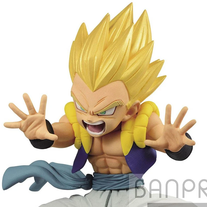 Dragon Ball Z Figurine Gotenks Super Saiyan dans la gamme Chosenshiretsuden par Banpresto. Figurine DBZ en PVC, taille: 10 cm sur socle de la fusion Trunks et Goten.