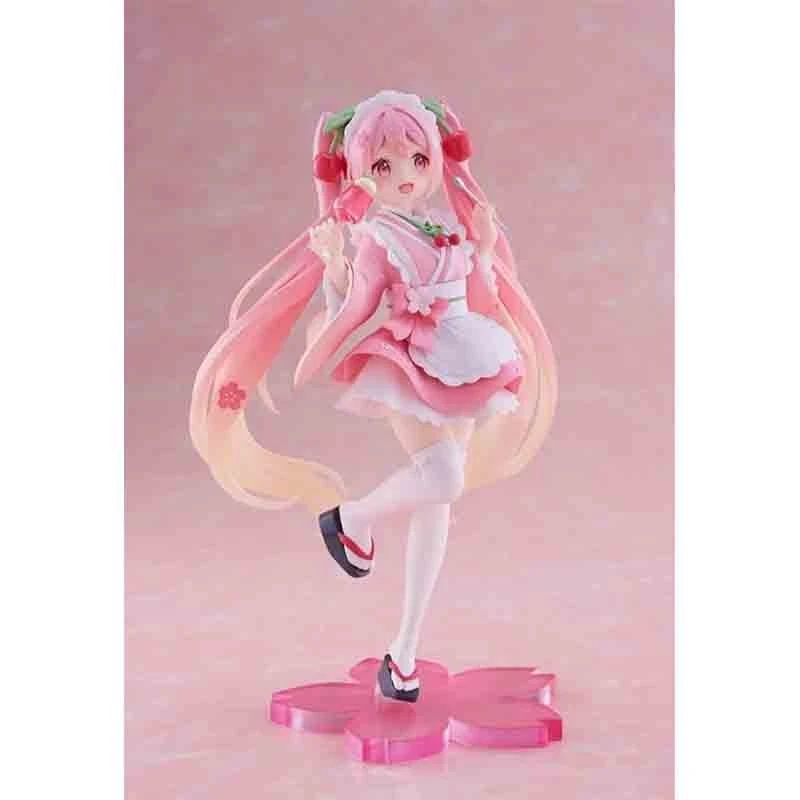 Figurine Miku Hatsune Sakura Newly Written Jap Coffee par Taito. Figurine Miku Hatsune en PVC, taille: 18 cm sur socle en forme de pétale de cerisier.