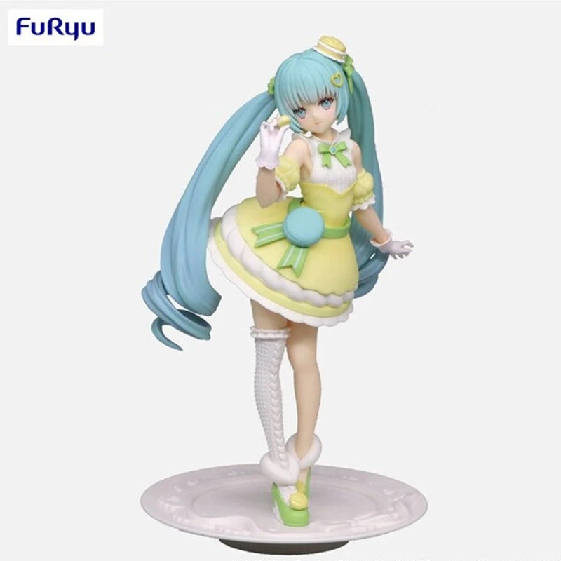 Figurine Miku Hatsune Sweet Sweets Series Macaron dans la gamme Exceed Creative par Furyu. Statuette Miku Hatsune en PVC taille: 21 cm dans une tenue totalement Kawai Macaron citron.