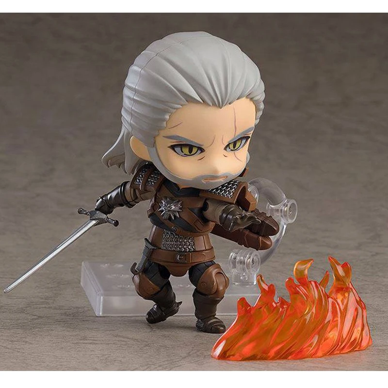 The Witcher 3 Wild Hunt Figurine Geralt ddans la gamme Nendoroid du fabricant Good smile company. Figurine articulée en PVC, taille : 10 cm avec accessoires et parties interchangeables du héro du jeux video The Witcher le charismatique Geralt. Cette version contient le socle Wolf Medaillon en