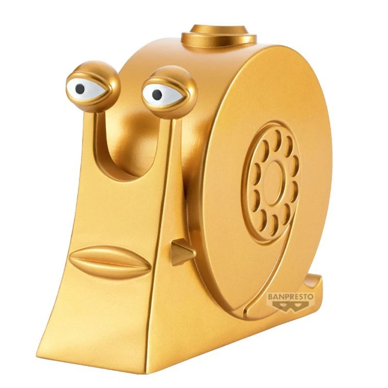One Piece Figurine Golden Den Den Mushi dans la gamme SOFVIMATES par Bandai Banpresto. Statuette de l’iconique escargophone or de One Piece en PVC, taille : 9 cm.