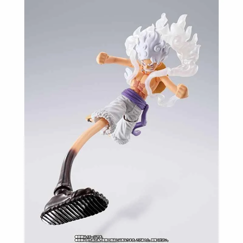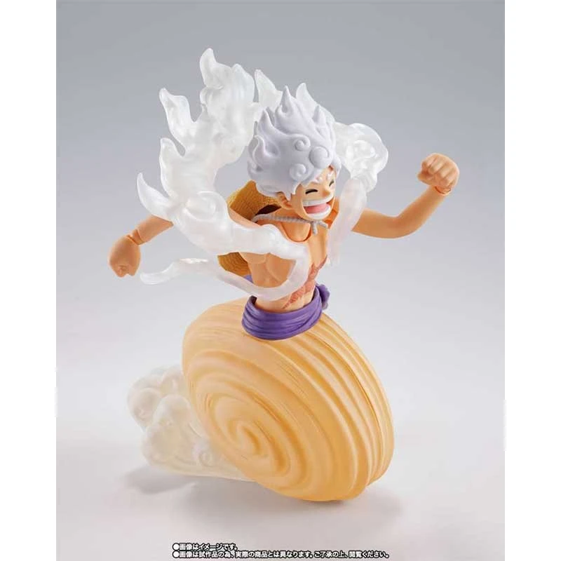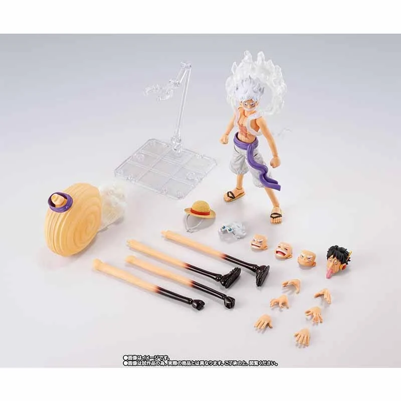 Figurine One Piece de Luffy Gear 5 Egghead S.H Figuarts entièrement articulée avec une tonne d’accessoires qui permettent de recréer les scènes du manga.
