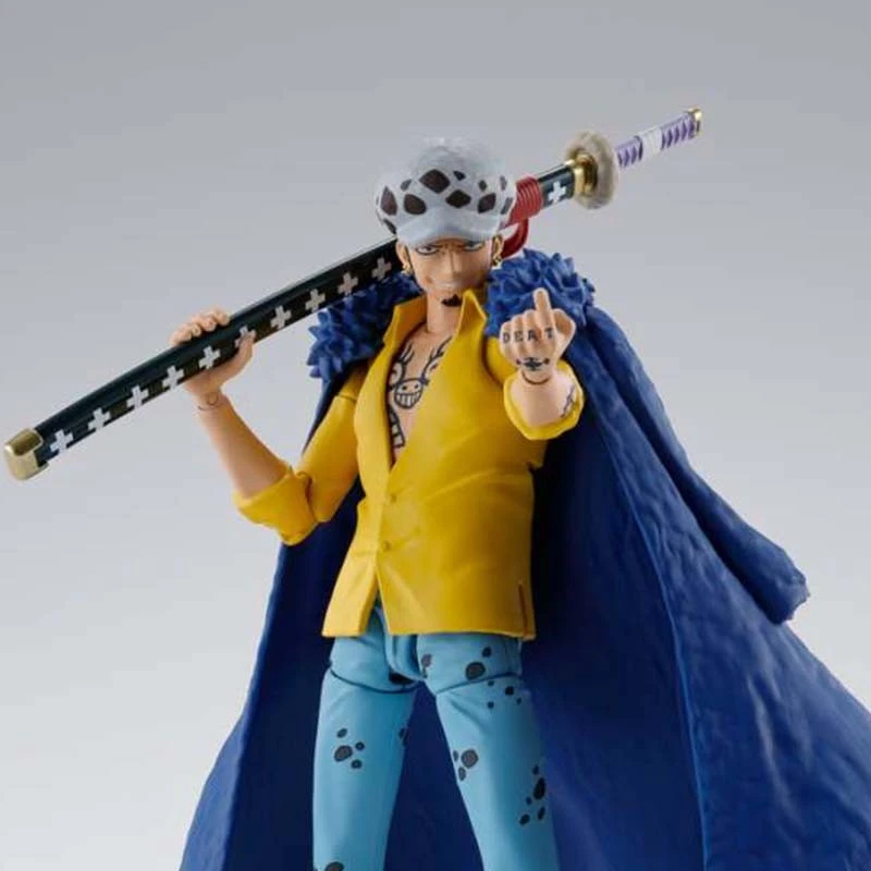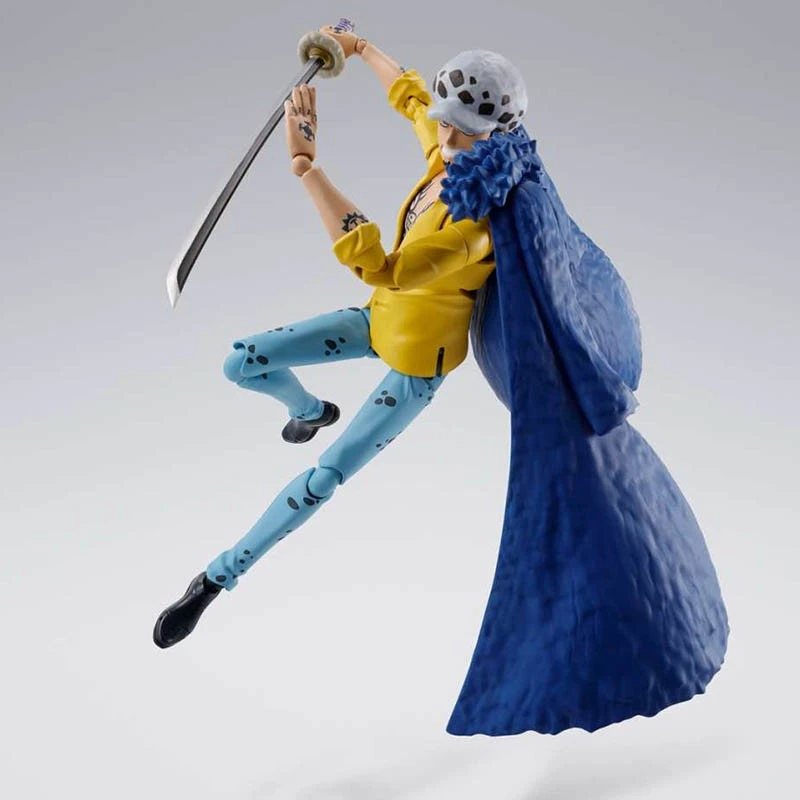 One Piece Trafalgar Law Onigashima version dans la gamme SH Figuarts par Bandai Tamashii. Figurine articulée One Piece en PVC, taille: 16 cm avec de nombreux accessoires de Trafalgar Law.