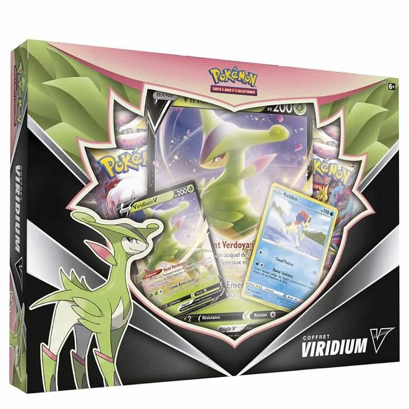 Coffret Pokémon Viridium JCC. Ajoutez à votre collection de cartes Pokémon ce magnifique coffret Viridium et faites souffler les vents verdoyants.