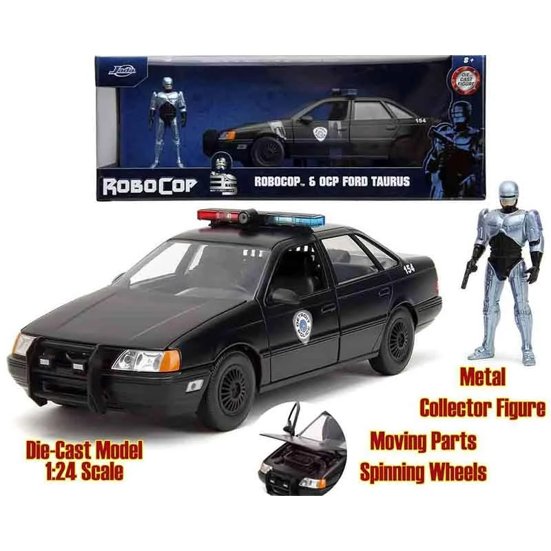 Robocop Figurine Ford Taurus et Robocop par Jada. 1/24 Die Cast Model de Robocop et sa voiture de l’OCP la Ford Taurus.