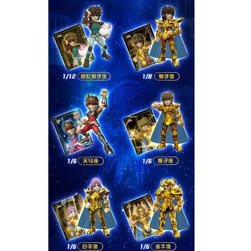 Saint Seiya Figurine Kayou Actions Golden Will the 1st Bullet. Boite de 6 figurines Saint Seiya à construire en PVC, taille : 12 cm env.