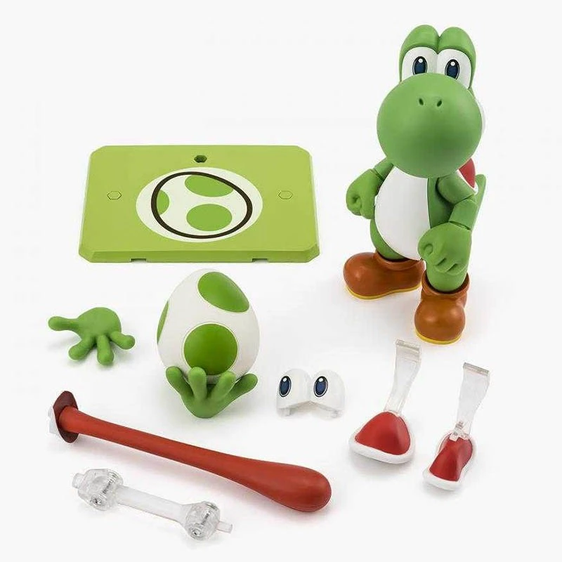 Super Mario Bros Figurine Yoshi dans la gamme S.H Figuarts par Bandai Tamashii. Figurine entièrement articulée en PVC, taille : 11 cm avec de nombreux accessoires de la fidèle monture de Mario l’incroyable Yoshi.